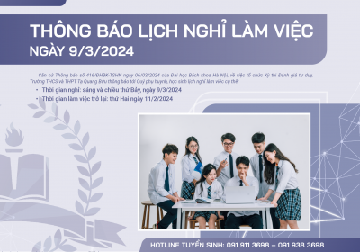 Căn cứ theo Thông báo số 416/ĐHBK-TSHN của Đại học Bách khoa Hà Nội, Trường THCS và THPT Tạ Quang Bửu thông báo tới...