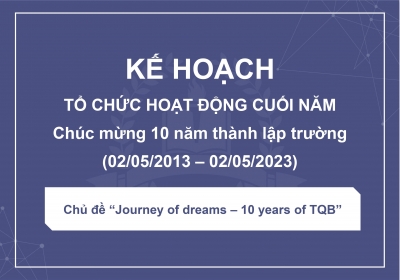 Kế hoạch tổ chức “Ngày hội TQB” năm học 2021-2022 Cuộc thi cắm trại, Khởi nghiệp, TQB’s Got...